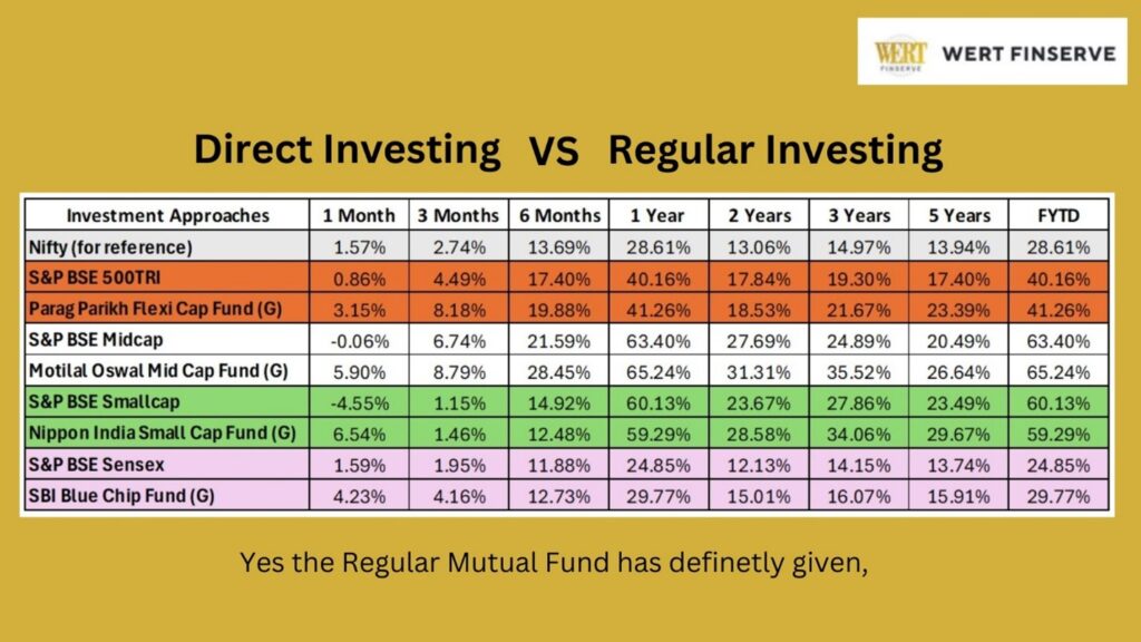 I recently had a guest who showed interest in our investment services. However, after a thorough discussion, he seemed puzzled about choosing between the direct and regular options. He straightforwardly asked me, “What advantages do I have as an investor with the regular investment option?” If you’re also wondering about the advantages of choosing regular investing through an agent or mutual fund distributor instead of going direct, then you are at the right place.